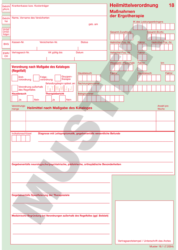Die ergotherapeutischen Behandlungen müssen vom Arzt vor Behandlungsbeginn als Behandlung in der Praxis oder als Hausbesuch verordnet werden.